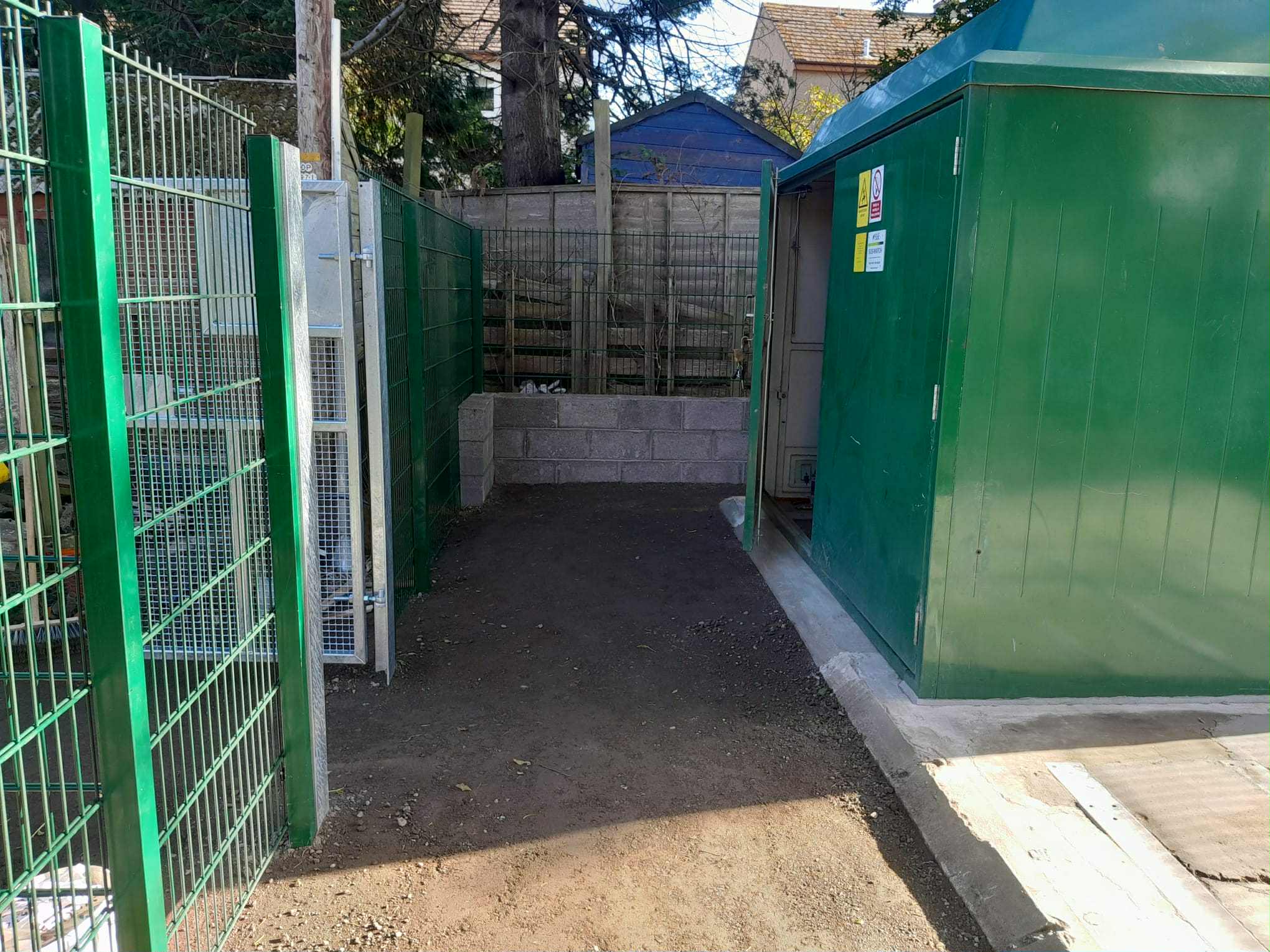We recently installed a new substation kiosk and 1.8m security fence at Gaitside Place, Aberdeen, working in partnership with SSEN. The project invovled safely uncovering live cables in a narrow 2.8m access lane., breaking out the exisiting concrete base for the new trasnformer and kiosk.