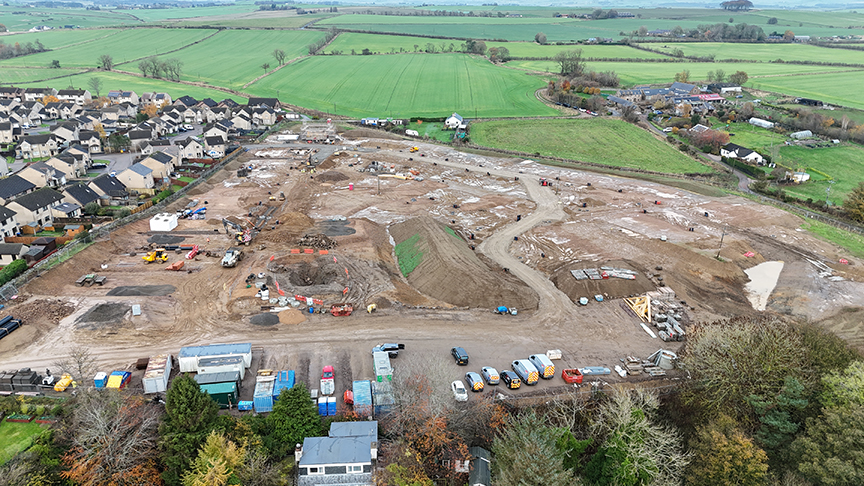 Nicol of Skene is delivering a full turnkey civil engineering package for a new 64-plot residential development at Bonnyton Farm, Pitmedden, on behalf of Kirkwood Homes.